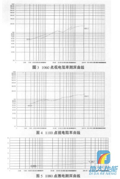 (2)在100線1060、1100點上進(jìn)行電阻率測深, 從二個點的曲線形態(tài)來看,曲線形態(tài)相似且地層分層明顯;70~200m層位穩(wěn)定,基本為砂巖(見圖3~4)。